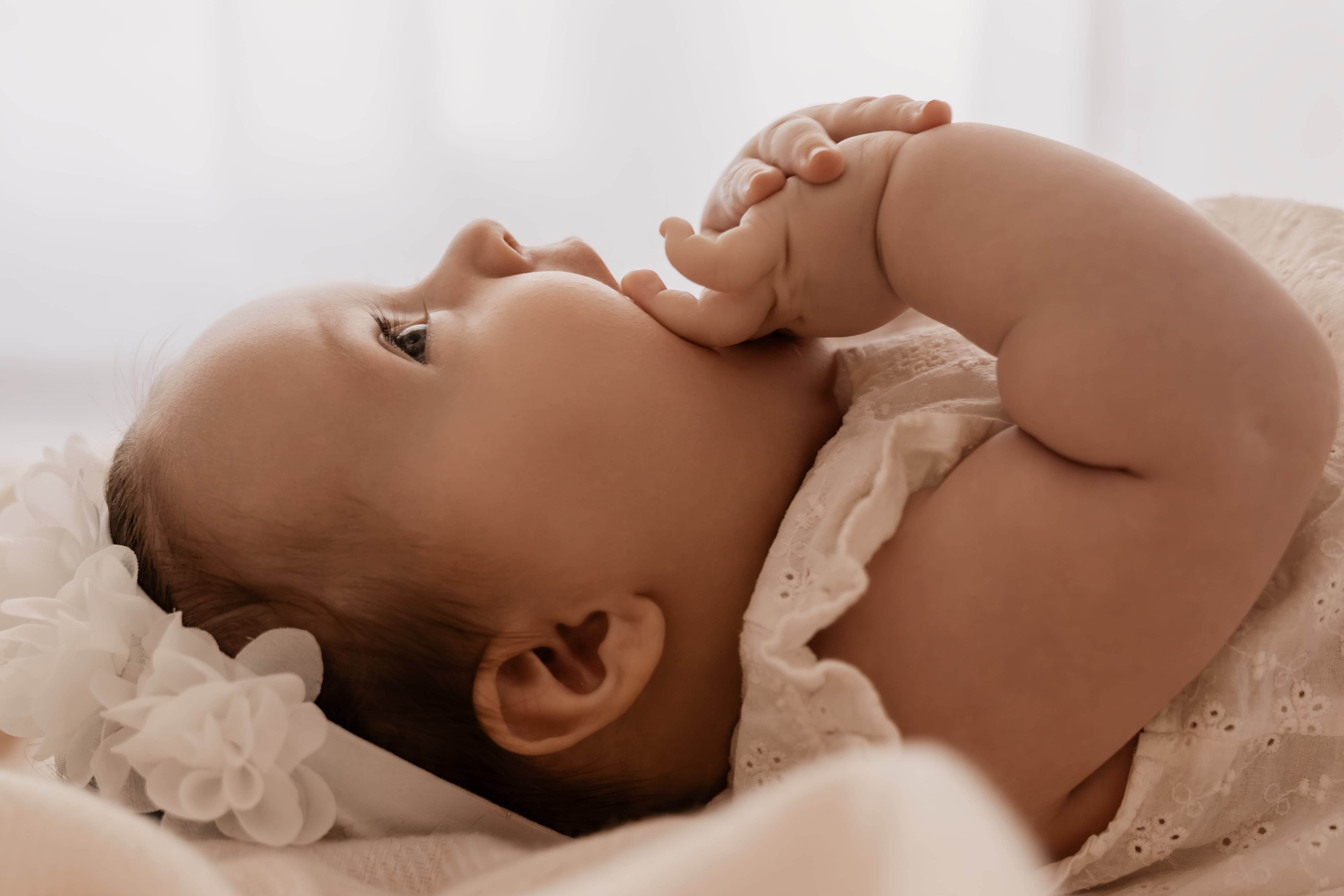 Pour une séance Naissance, l’idéal est de la réaliser dans les 15 premiers jours de vie du bébé. À cet âge, il dort encore beaucoup, ce qui facilite les poses, et les coliques ne sont généralement pas encore présentes. Au delà, je vous préconise de choisir une séance photo Famille lorsque bébé sera un peu plus grand.