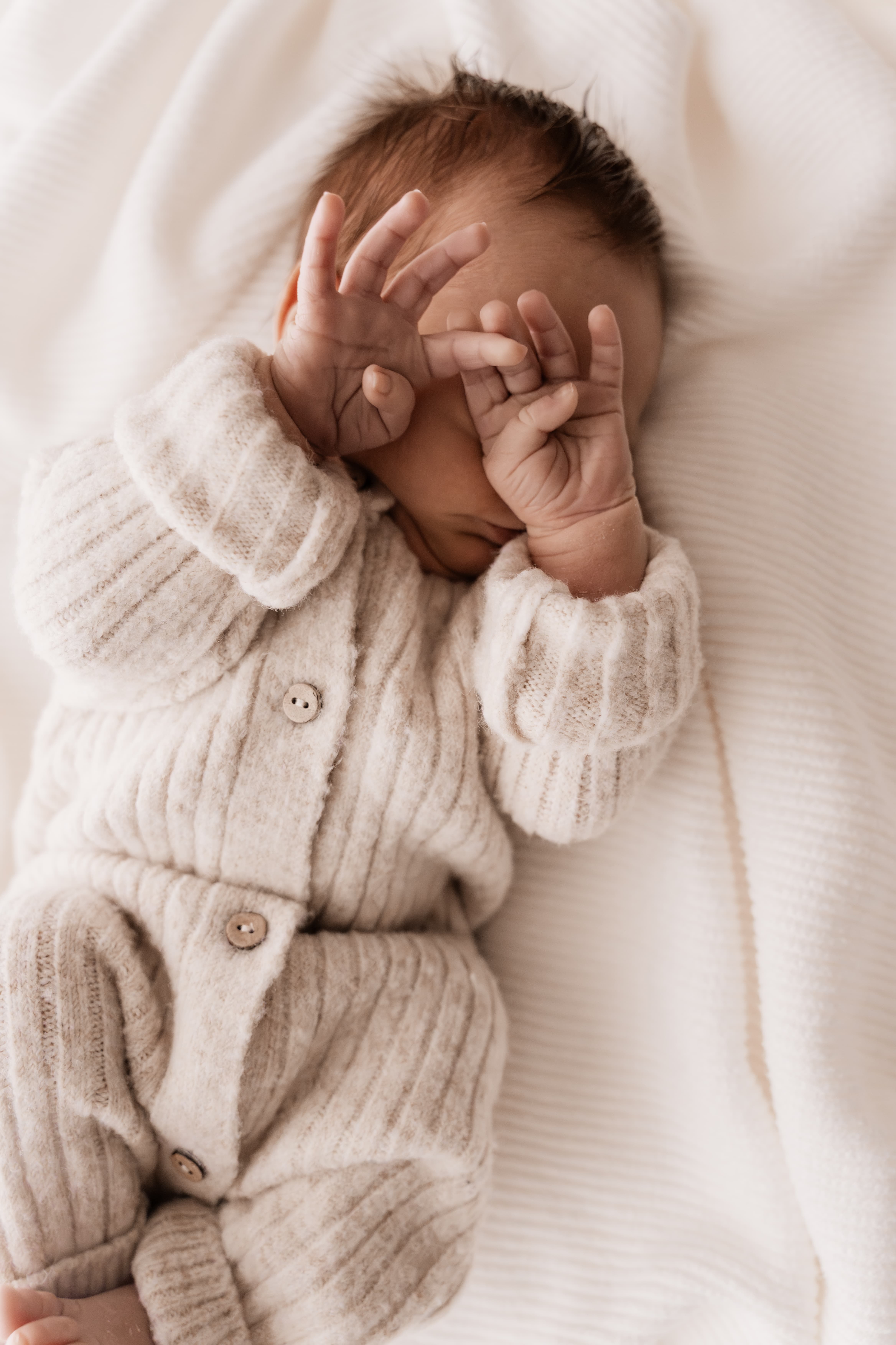 Pour une séance Naissance, l’idéal est de la réaliser dans les 15 premiers jours de vie du bébé. À cet âge, il dort encore beaucoup, ce qui facilite les poses, et les coliques ne sont généralement pas encore présentes. Au delà, je vous préconise de choisir une séance photo Famille lorsque bébé sera un peu plus grand.