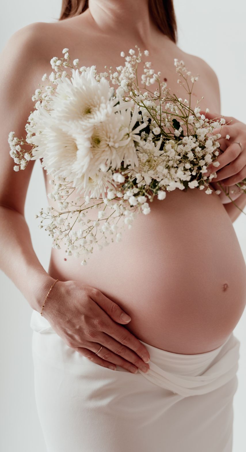 Les images, aux teintes neutres et harmonieuses, mettent en valeur votre féminité et la beauté naturelle de cette étape unique.